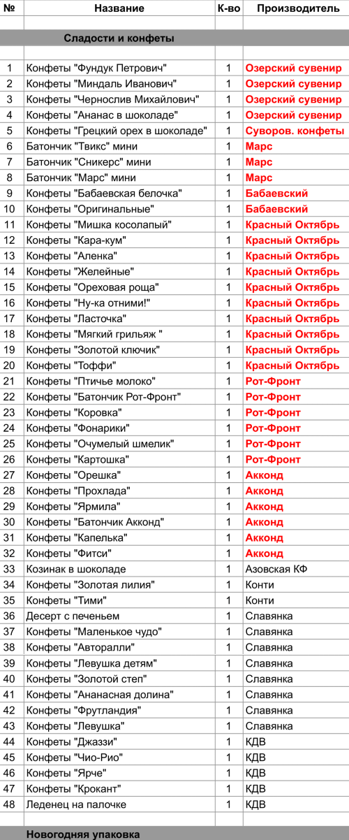 1. Проверить, можно ли внести изменения в состав подарка. Если нет, то скорее всего наборы были собраны еще летом из конфет, произведенных еще раньше